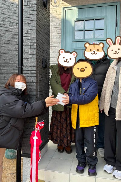 完成したお住まいを前に記念写真を撮らせていただきました!