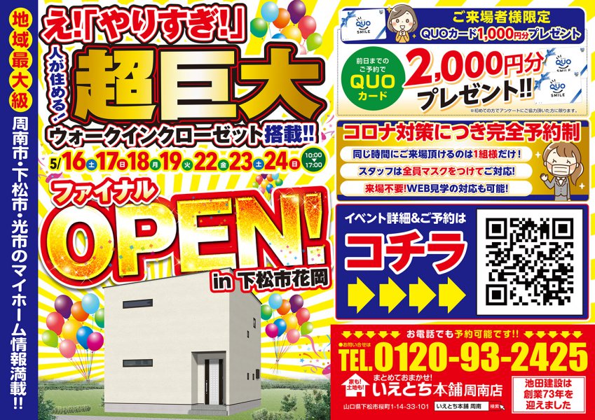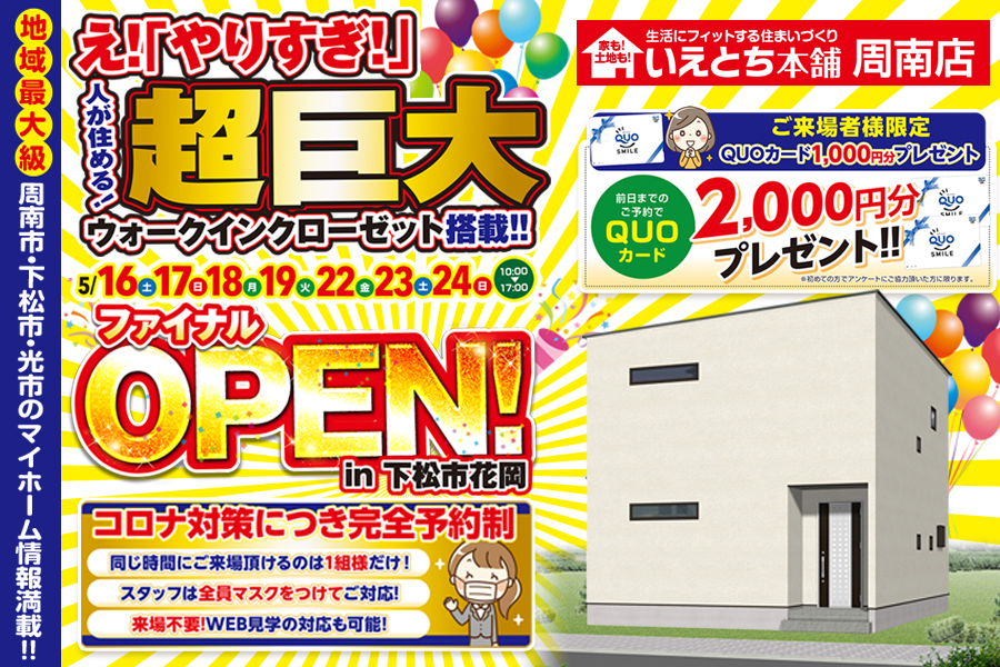 【下松市花岡】超巨大ウォークインクローゼット搭載の新築FINALOPEN!