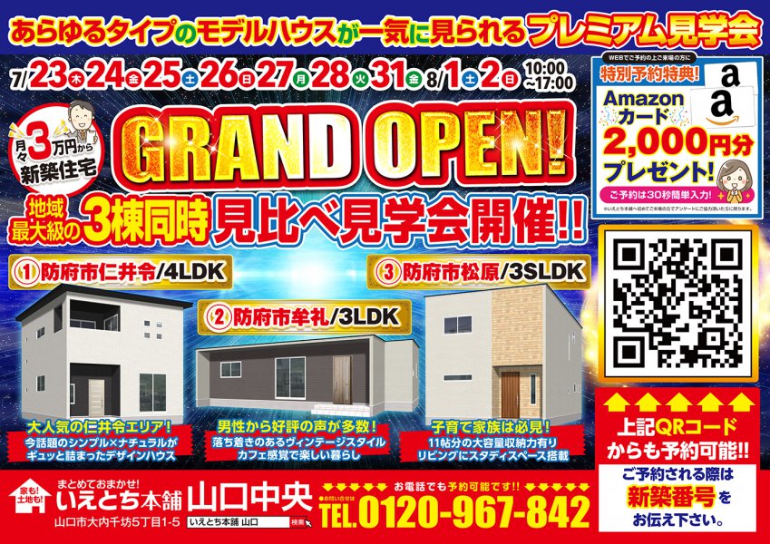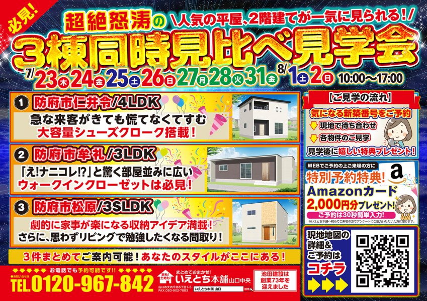 超絶怒涛の防府市3棟同時見比べ見学会 OPEN!