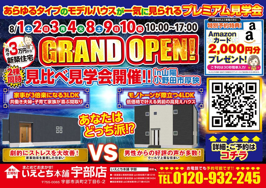 【山陽小野田市厚狭】2階建て VS 平屋 2棟同時見学会
