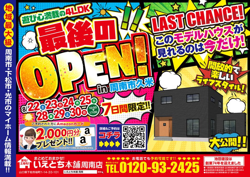 【周南市久米】遊び心満載の4LDKモデルハウス最後のOPEN!!