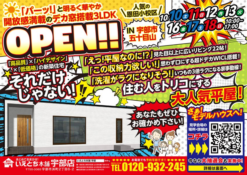 【宇部市五十目山】サンサン☀と明るく照らすデカ窓搭載の3LDK OPEN!