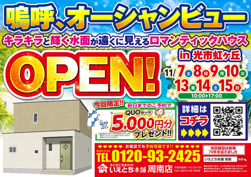 【光市虹ヶ丘】遠くに海が見えるロマンティックハウスOPEN!