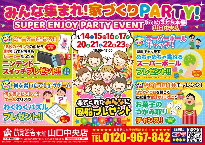 風船がもらえる!スイッチが当たる!家づくりパーティー開催!