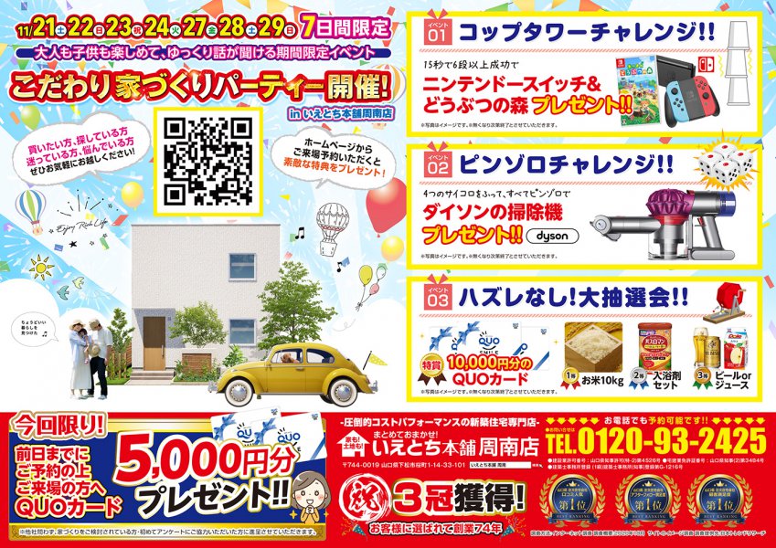 - 家づくりをこだわりたい方必見! 大人も子供も楽しめて、ゆっくり話が聞ける 7日間の期間限定イベント こだわり家づくりパーティー開催!