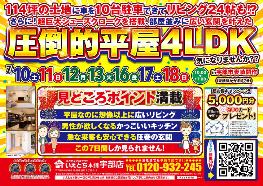 【宇部市妻崎開作】100㎡超え+10台駐車可の平屋4LDK誕生!