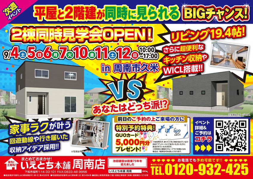 【周南市久米】平屋と2階建が同時に見れるBIGチャンス!2棟同時見学会