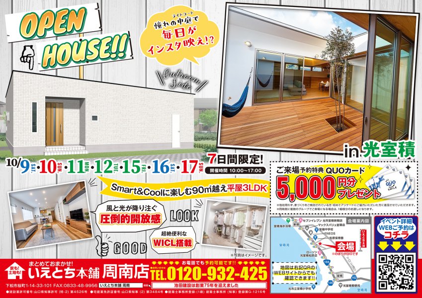 【光市室積】憧れの中庭で毎日がインスタ映え!?Smart&Coolに楽しむ90㎡越え平屋3LDK